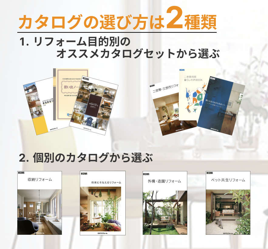 当ページにご入力いただきましたお客様の個人情報は、建築・リフォーム工事、不動産売買、その他ミサワリフォーム株式会社の定款所定の事業の実施にともない、各種資料・ご案内の配信・送付・お届け、ご連絡・ご訪問・お打合せ、各種プラン・計画等のご提案、アンケート調査の実施、その他営業活動を行う目的で利用(共同利用を含む)することがございます。なお、この利用目的の達成のために、当社グループの関連会社その他の第三者に提供することがございますので、あからじめご了承のうえお客様の個人情報をご入力くださいますよう、お願い申し上げます。詳しくは、「ミサワリフォーム プライバシーポリシー」をご覧ください。